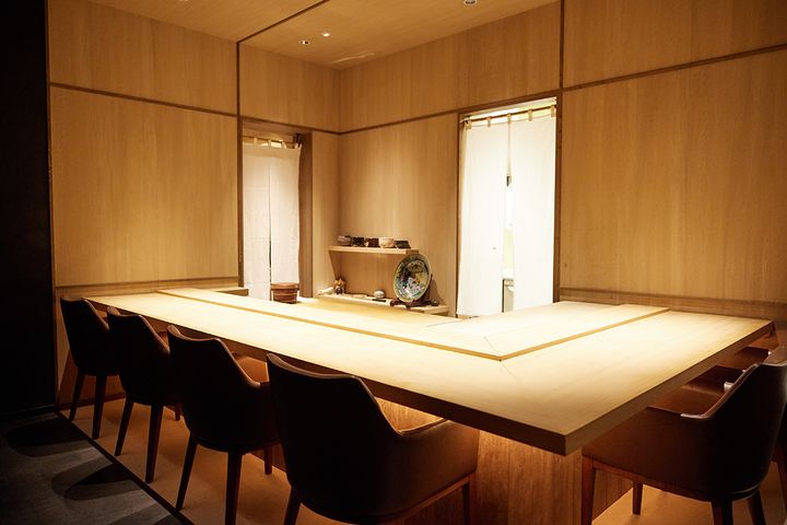 その奥にもう一部屋あり、プライベートカウンターとなっています。プライベートカウンターは、基本的には4名以上の1組限定利用のみ。照明も落とし気味で、よりプライベートな雰囲気です。ほかにも個室が2部屋あります。
