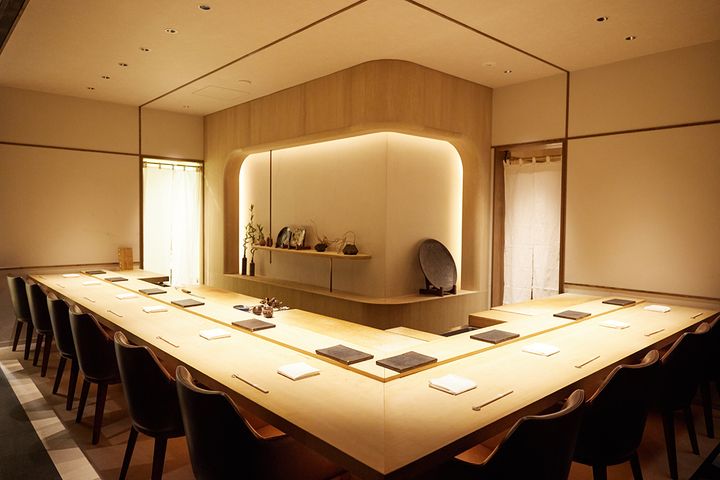 「鮨バー」は地下にあるので、外観だけでは寿司店とは分からない「知る人ぞ知る」ぜいたく感を味わえます。かしこまり過ぎない和モダン調のインテリアも入りやすい雰囲気。ドレスコードはとくに設定されていないですが、寿司を楽しむマナーとして、香りの強い香水や化粧品などは控えるようにしましょう。