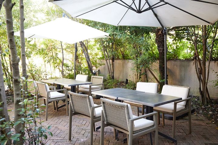 まるでリゾート地のような雰囲気のテラス席は、愛犬連れにも人気の席。寿司ランチをいただいた後に、ここでコーヒーを飲むこともできます。春や秋の気持ちのいい季節はテラスにつながる1階の窓が開けられていて、開放感たっぷりです。