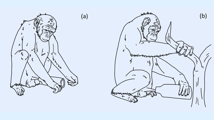 ペットボトルで自慰をするチンパンジー(この絵は2021年の類似する研究のものです)/ Credit:Use of a novel human object as a masturbatory tool by a wild male chimpanzee at Bulindi, Uganda