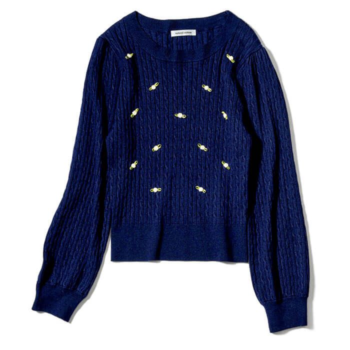 ケーブルニット上に点在する小さなフラワーにキュン♡