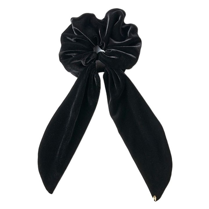 カジュアルコーデでもグッとお出かけ見えするベロアシュシュ