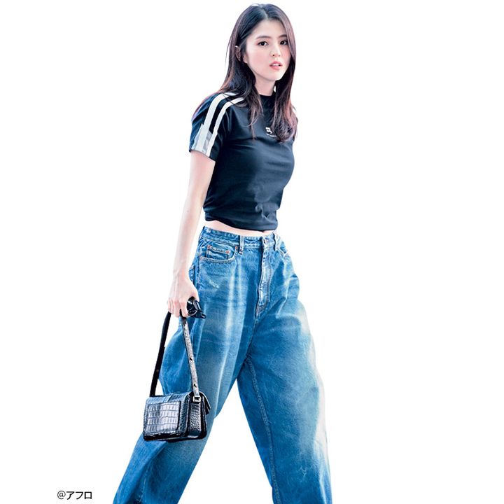 BLACKPINKのリサの大ファンで、彼女がセリーヌのアンバサダーを務めたのをきっかけに開眼!シンプルなワンツーコーデでも、目を引くトリオンフモチーフでぐっと華やかに。