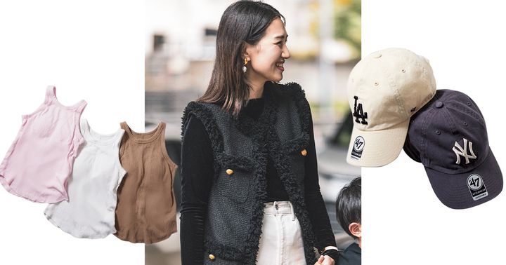気取らずにラフなスタイルで送迎するママたちが多いから、すっぴん登園も日常茶飯事。韓国女優のSNAPを参考に、小顔効果が絶大な深型キャップに人気が集中。行きつけは、センスのいいCAPが見つかると話題の47。