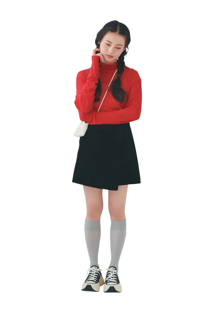 レトロ可愛い黒のスコート。プチプラボトムは安っぽく見えない厚めの生地に注目して選ぶべし!