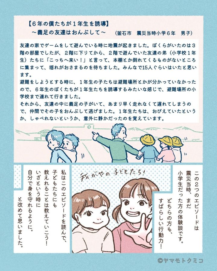 私は今回の漫画制作をきっかけに、さまざまなエピソードを呼んでみたのですが、被災者の心情や、災害で困ったことなどの体験話が、どれも本当に“リアルな声”ばかりで、とても参考になりました。