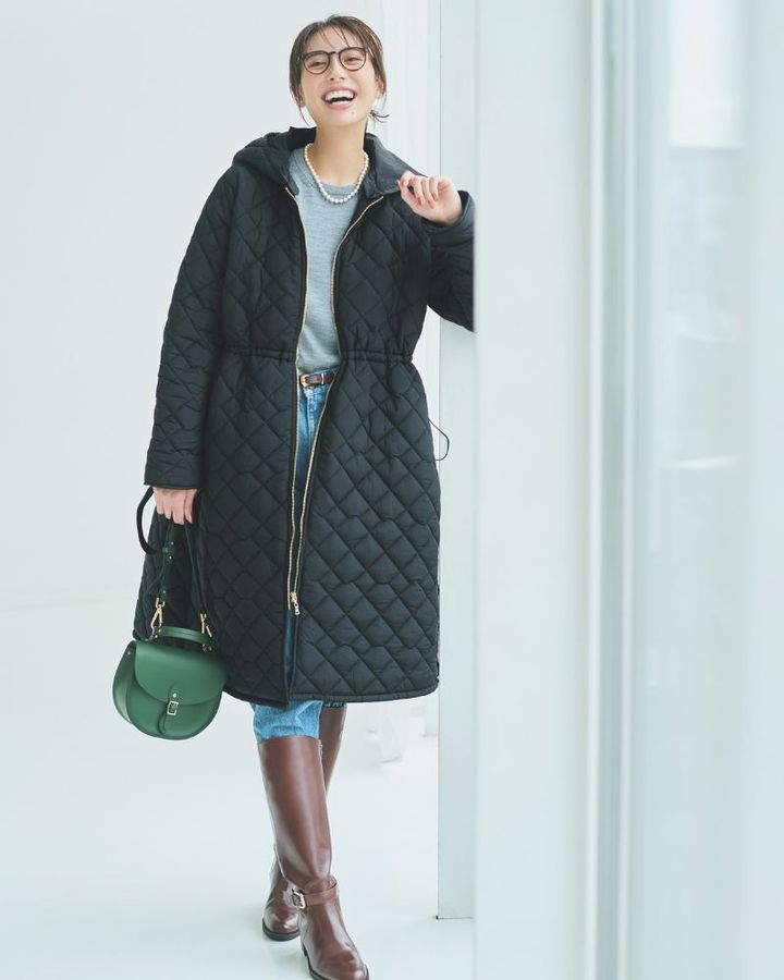12月2日(月)、本格的に冷え込む師走に重宝したいのが「キルティングコート」。中綿が入っているぶん防寒も叶いつつ、素材のステッチで洒落感が割増される大人の必須アイテム。着膨れしないよう黒に頼ったり、ウエストのギャザー付きでAラインを強調すると引き締まります。外側が女性らしいフォルムなぶん中はデニムやニットでカジュアルに。足元はロングブーツで縦ラインを意識すると、美シルエットが格上げします。