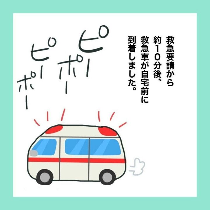 救急要請をすることも、そして救急車が到着するまでも、とても不安な時間が流れます。パニックになりながらも、救急要請をすることを決め、病院へ行く準備をしたサチさん。娘を救いたいサチさんの気持ちが痛いほど伝わってくるエピソードでした。