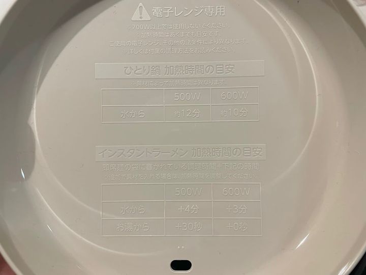フタの裏側にも加熱時間の目安が記載されていますよ♪