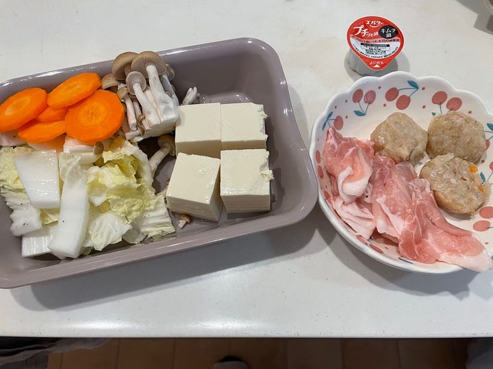 では、実際に作っていきましょう。キムチ鍋の分量などは自分で考えましたよ!