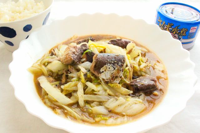 白菜とサバの水煮缶を合わせた炒め物は珍しいと思うので、ぜひ!炒めてあんを絡めるだけなので、とても簡単に作れますよ。