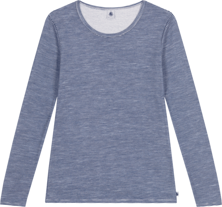 外側はウールの暖かさ、内側はコットンの極上の柔らかさ。チクチクが苦手な人もストレスがなく着られるから、毎日使いに最適。長袖Tシャツ XXS~L ¥12,100/プチバトー