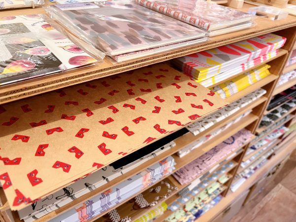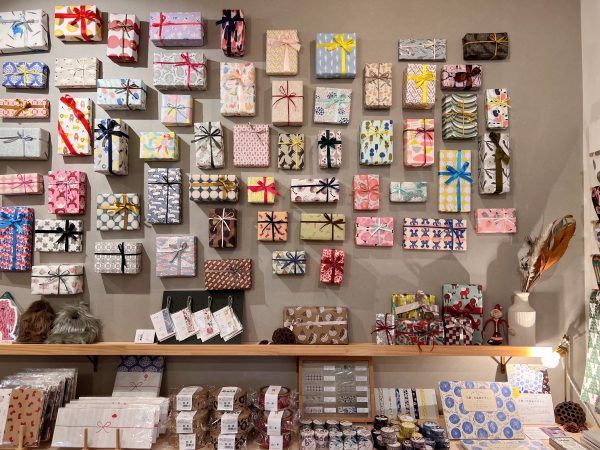 入店した途端、ふわっと紙の香りがしました。古民家を改装した温かみのある店内には、イギリス、韓国、ネパールなどから輸入された包装紙がズラリと並びます。 さらに、代表兼デザイナーでもある江藤さんがデザインしたオリジナルのペーパーもたくさんありました。