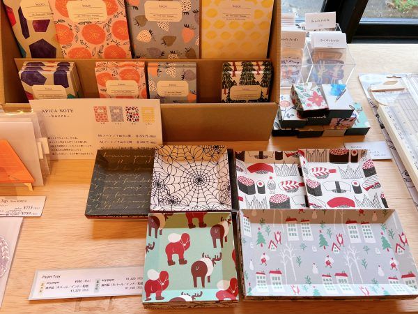 他にも紙製トレーや、自身で好きな紙を貼って箱を作れるキットなどが販売されていました。 ラッピングの他に、好きな柄のペーパーを形に残せるのも良いですね。