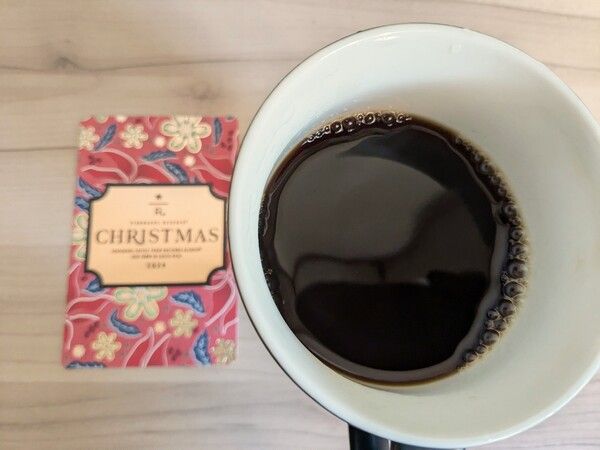 3種類の中でもっとも浅い「ブロンドロースト」のクリスマスブレンド。エチオピア産の華やかな風味とメープルシロップのような甘味、ほどよいコクを感じられます。深煎りが得意でない方でも飲みやすいです。