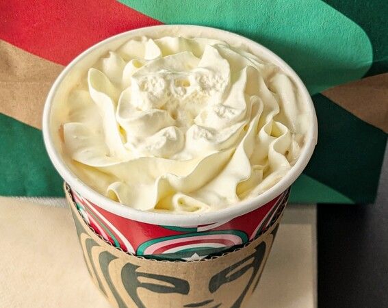 今回は、ドリップコーヒーにメリークリームを追加したところ、ウインナーコーヒーのようなまろやかな味わいに仕上がりました。コーヒーは日替わりの「クリスマスブレンド」だったので「メリークリーム」と相性ピッタリです。もちろん、カフェミストやスターバックスラテ、アーモンドミルクラテ、ソイラテなどに追加するのも◎