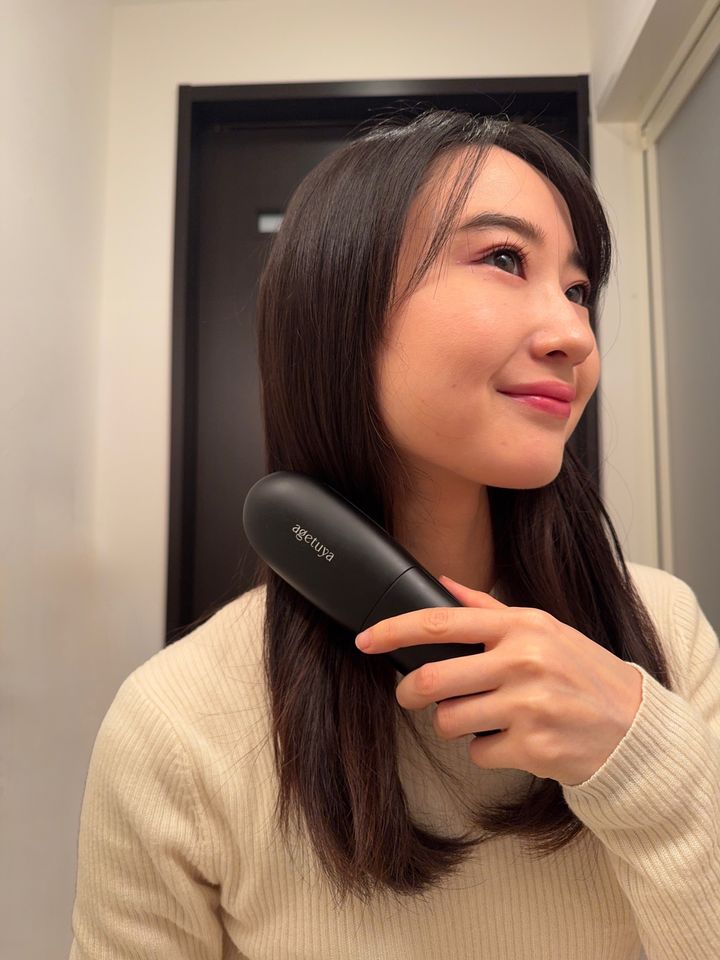アゲツヤのブラシはイオン放出されているので、静電気も抑えながらセットができて、まとまりとツヤ感が実感できました。