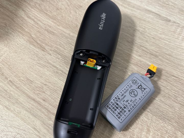 リチウムイオンバッテリーの取り外しが簡単にできるので、飛行機に乗るときも機内持ち込み可能。