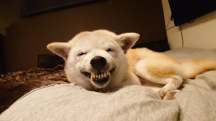 ついセリフをつけたくなる!笑うワンコに2.5万いいね「これは噴き出す」「満面の笑み」