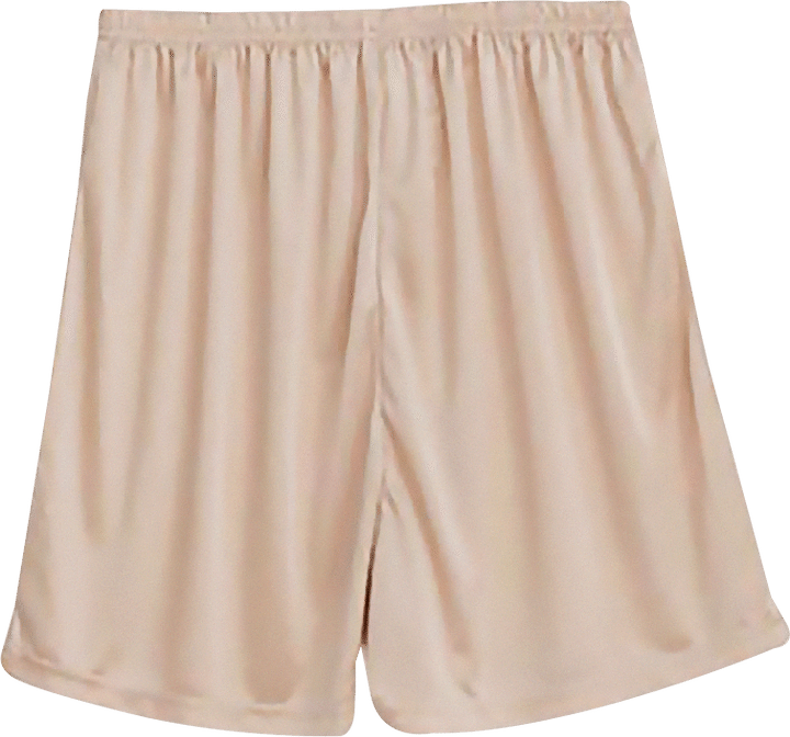 下着の透け防止目線で選ぶなら、一切締め付け感のないペチパンツがオススメ。伸縮性素材でノンストレスだし、静電気防止加工もついていて肌に張り付きにくい。写真の膝上丈のほか、膝下丈もあり。ペチパンツインナー L〜8L ¥1,190/A HAPPY MARILYN