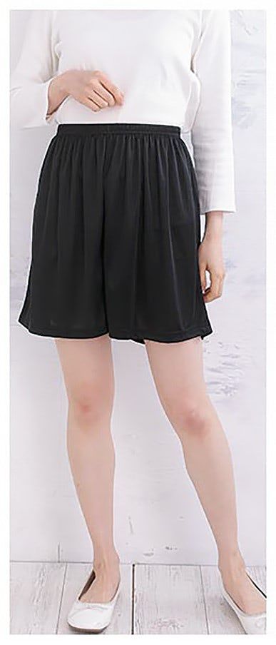 長時間座っていると太もも裏やおしりが汗でじっとりする人にも安心の、汗じみ軽減加工付きペチパンツ。前は涼やかなメッシュ仕様。太もも裏&おしりの汗悩みに 透け対策もできる スマートな万能ペチパンツの会 M〜6L ¥2,750/flufeel(フェリシモ)