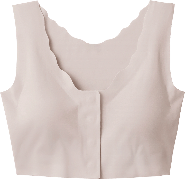 綿65%混でソフト&締め付け感が少なく、バスト全体をやさしくホールド。縫い目ゼロ仕様なので前開きでもアウターに響きにくい。【綿混タイプ】前開きハーフトップ M〜3L ¥3,740/メディキュア(グンゼ)