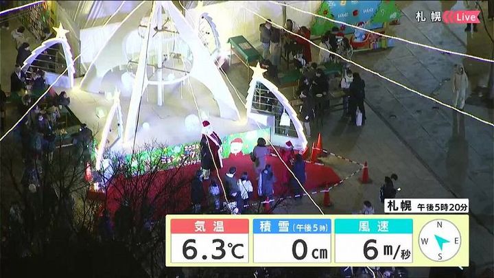 背景は2日午後5時20分頃の札幌情報カメラ。大通りで行われている「ミュンヘン・クリスマス市」のようすです。札幌でこの先、大雪はないですが、うっすら積もる日が多くなりそうです。