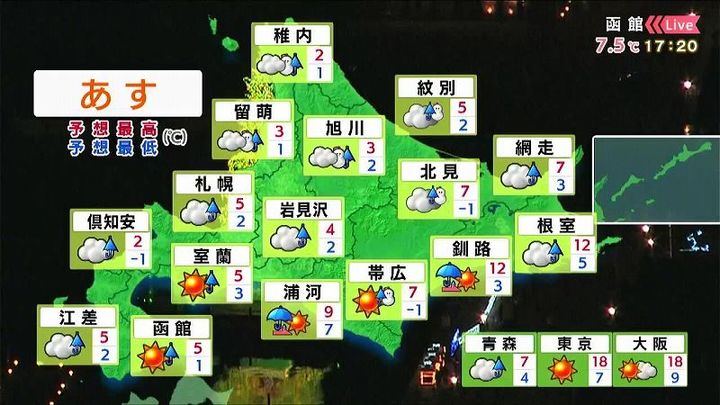 HBCテレビ「今日ドキッ!」の番組内でも独特(?)なイラストを使って天気をお伝えしています。