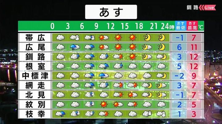 背景は2日午後5時20分頃の釧路情報カメラ。