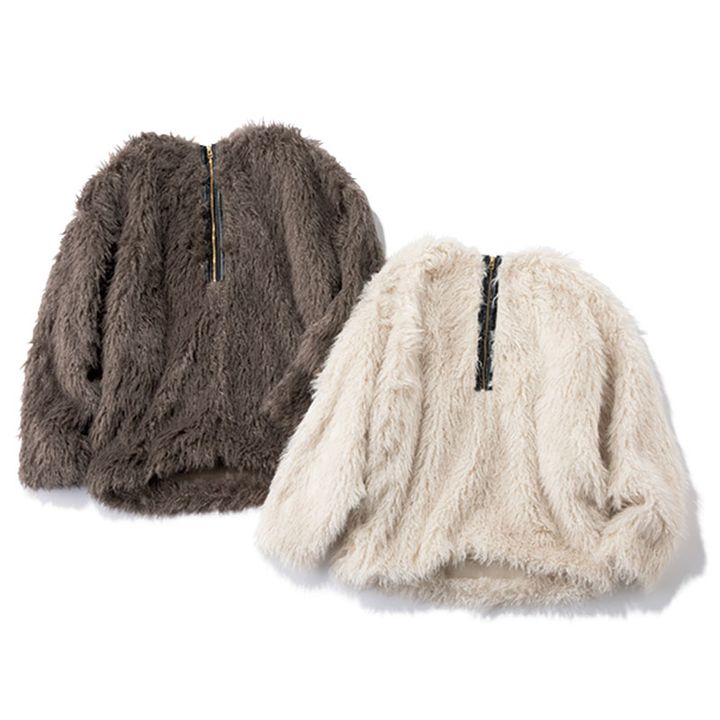 ALEGRE ハーフジップファープルオーバー ブラウン、ライトベージュ Price_¥15,400