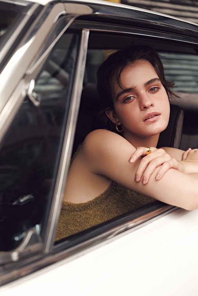 リリースが相次ぐ、「繊細なパールが輝くアイライナー」。いつものアイシャドウの上にさらりと効かせれば、清らかでより魅力的に。軽やかな抜けも生まれ、厚みのあるニットともバランスがとりやすい。 ピアス 3,630円/mimi33(サンポークリエイト) リング 29,700円/PLOW