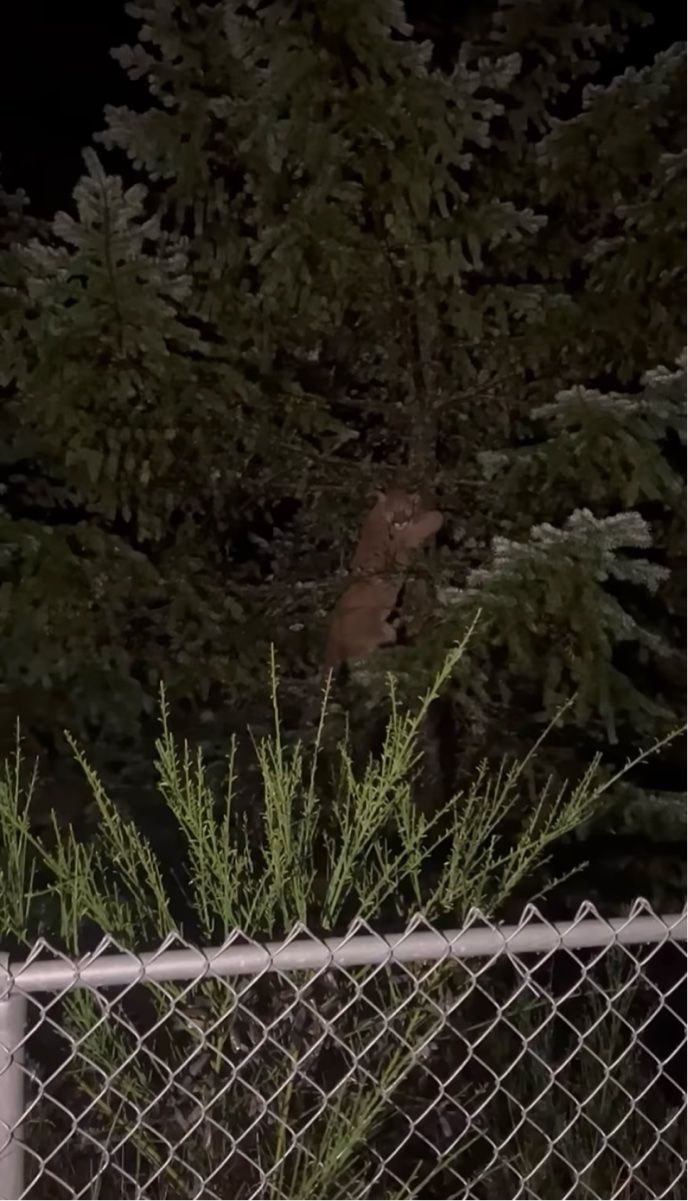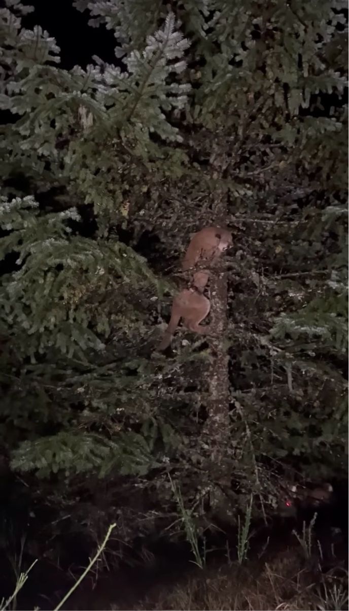 そう、このピューマは、撮影者さんの愛犬たちに追いかけられて木の上に避難していたのです!
