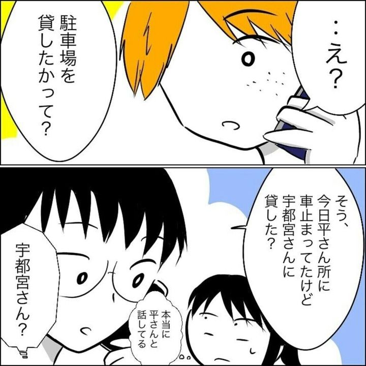 たまたま、隣の駐車場の契約者と顔見知りだったAiさんの夫。すぐに確認の電話をします。すると、予想通りの反応が返ってきました…。Aiさんの隣人である宇都宮さんは、またしても平日の昼間に空いている駐車場に目を付け、勝手にマッサージ師へ駐車の許可を出したようです。