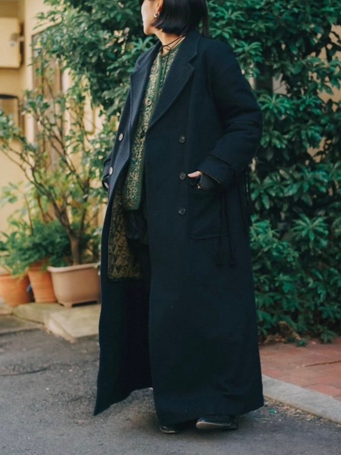 「スタンダードな形なので、毎日のコーディネートに非常にあわせやすい一枚。それでいて遊び心のあるデザイン性で、スタイリングにワンアクセントを加えてくれるところがとても気に入っています。ギリギリのロング丈なのも◎」sawa takaiのコートは本人私物
