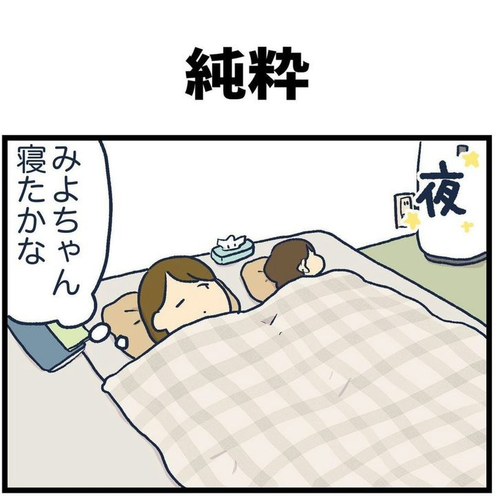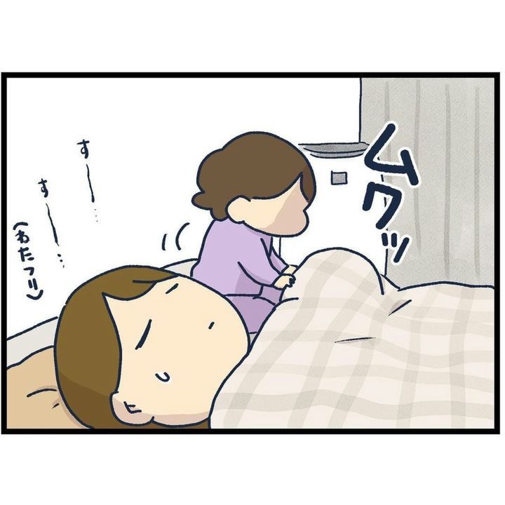 こちらはインスタグラムで育児漫画を投稿している、もす(@mosumanga30)さんの作品です。ある夜、娘のみよちゃんと寝ているとムクッと起き上がる気配がします。寝たふりをする、もすさん。するとみよちゃんが寝ているママを見つめて…子どもならではの純粋な言動に、キュンとしてしまうエピソードです。