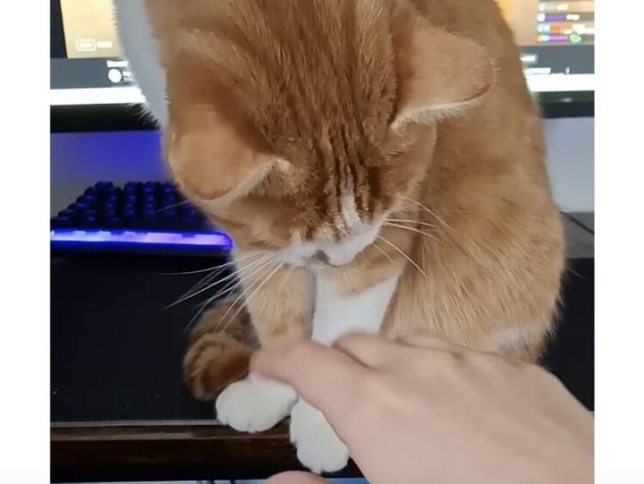 飼い主さんの真似をしているみたい。