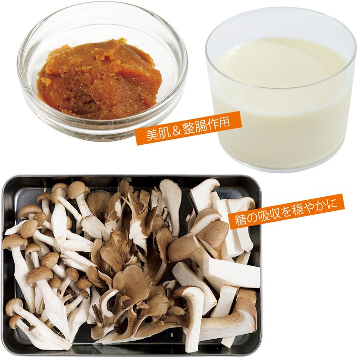 基本のスープにひと手間。旬のきのこ、食べる点滴といわれる甘酒に味噌の発酵調味料を加えたアレンジスープ。腸を整えることで脳も活性化。さらに美肌にも効果が期待できます。