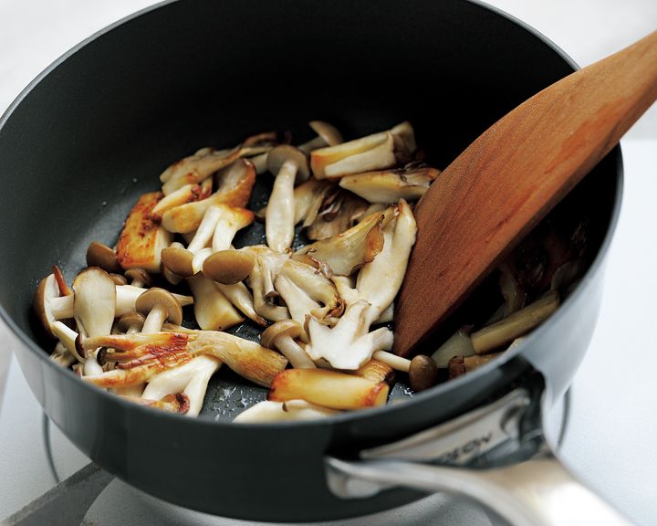 ①しめじ(石突きを落とす)とまいたけをほぐす。エリンギはしめじと同じ大きさに切る。②鍋を熱し、バター、1を加え中火できつね色になるまで炒める。水、基本のスープの素を加え沸騰したら弱めの中火で2分煮て火を止める。Aを加え味噌を溶かす。③器に盛り、ねぎをちらす。