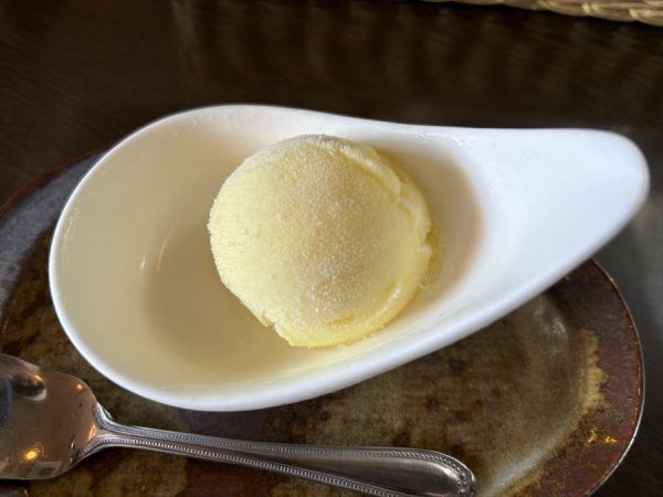そして食後にはドリンクがセットされているのでホットコーヒーを選び、一緒に可愛いシャーベットも出てきました。