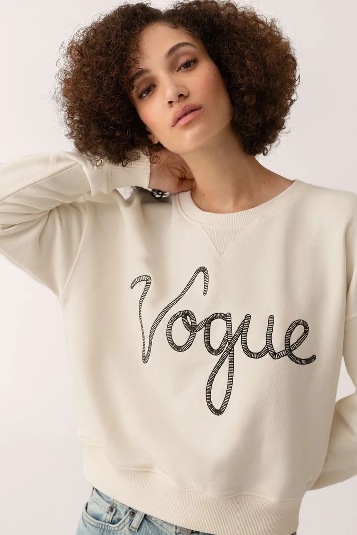 数あるアパレルのなかでも、特にギフトにおすすめなのが、VOGUEのロゴが効いたデザイン性のある秋冬の新作スウェットパーカ。優しいアイボリーに手書き風の「VOGUE 」ロゴがプリントされた1着や、ヴィンテージ感が漂うプリントと色味が印象的なスウェットは、オンにもオフにも対応してくれる優れもの。