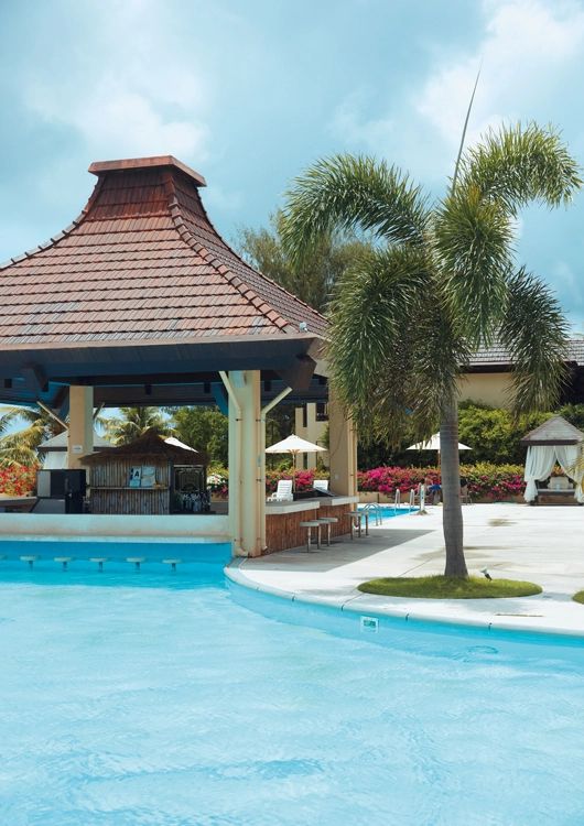 ナイトプールも楽しめるスイミングプール。水深4.8mのダイビングプールと浅いファミリープールの2種類があります。また、プールには水着のままトロピカルカクテルを楽しめるプールバー「ミシェルズバー」も併設。色鮮やかなドリンクを味わえます。