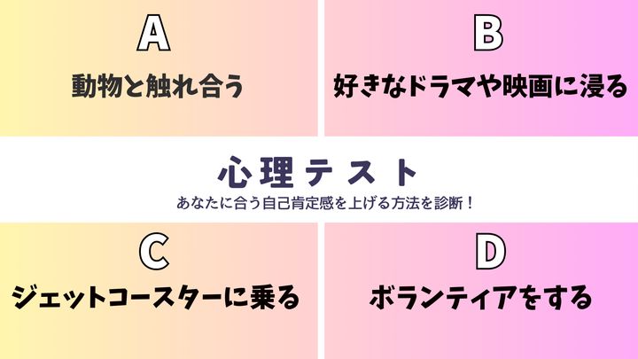 今回は、"自己肯定感を上げる方法"がわかる心理テストをお届け。