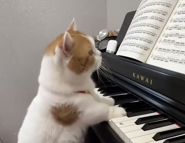 ピアノを演奏する猫さん、真剣な横顔が可愛い♡