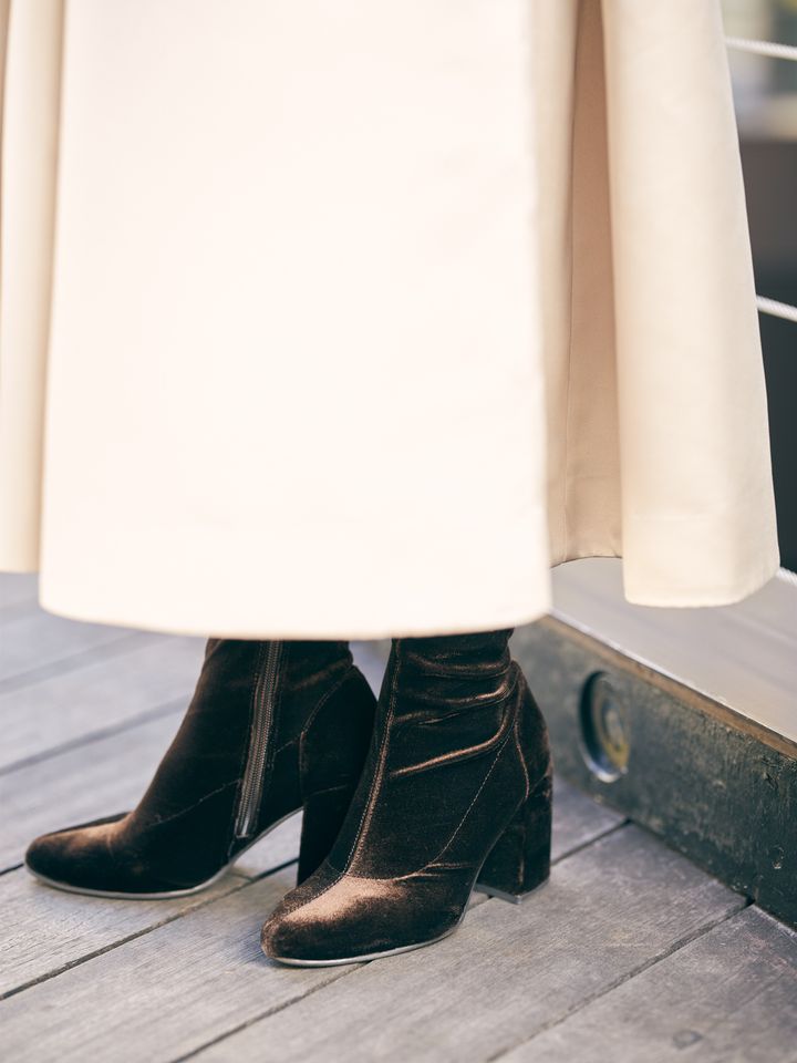 「どこへ行くにも子どもと一緒なので、ヒールを履くときは3~5㎝の太めが定番。合わせるスカートの長さにも気を付けて、フルレングスは避けるようにすれば子連れでもヒールは楽しめます。このブーツはトレンドに左右されないベーシックな形がお気に入り。ロングなら子連れお出かけの防寒対策にもおすすめです」橋中美帆さん/主婦(3歳の男の子ママ)