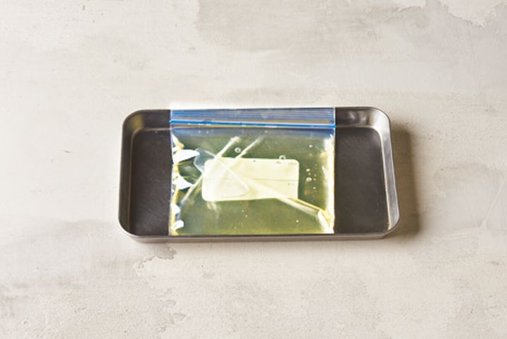 冷蔵庫で12時間置いたら、そのまま注いで料理に使う。余っただしはピッチャーで保管せず、冷凍保存袋に小分けに入れて冷凍庫で保管するのがおすすめ。
