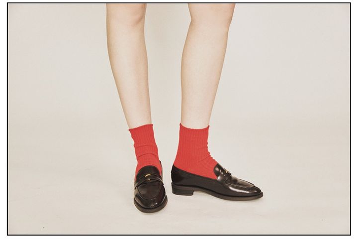 安定感のある黒・白・ブラウン・ベージュの靴を前提に、足元の新たな可能性をリサーチ。映える色や試してみたかった素材も、靴下なら少量づかいでとり入れやすい。