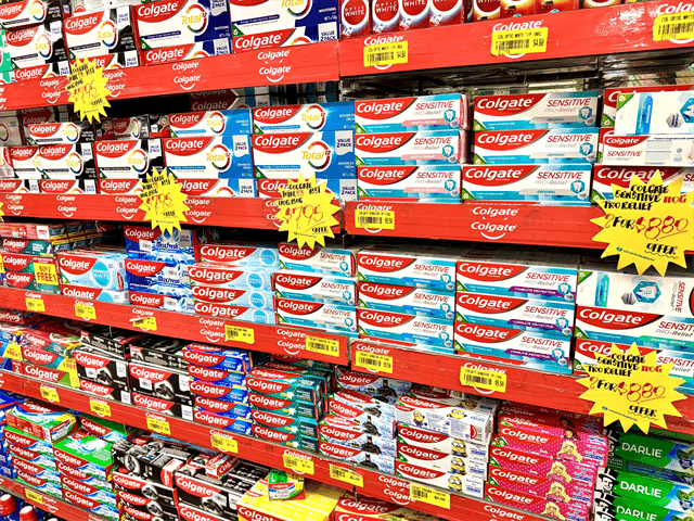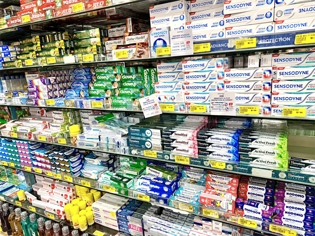 歯磨き粉の品数も半端ない! 日本人にも人気の「Colgate」もありました。