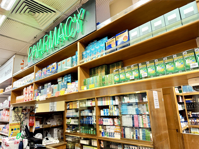 タイガーバームはこのファーマシー(薬局)のカウンター向かいに並んでいました