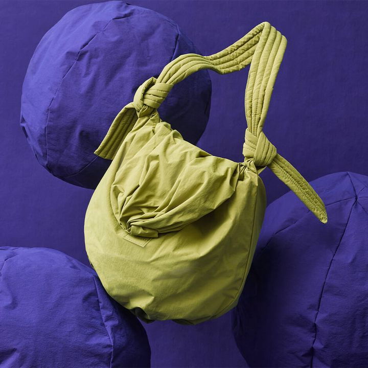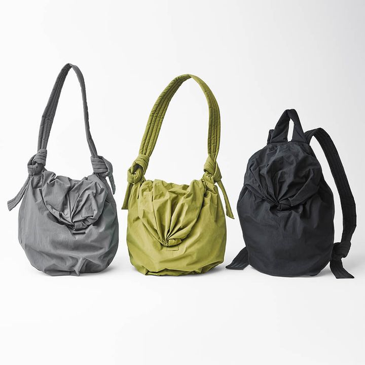 柔らかく軽やかな素材と形が魅力的なバッグ「FUWA FUWA」は、1枚の長方形の生地をねじって縫い合わせるというシンプルな作り。