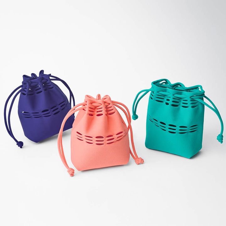 また同素材の小ぶりな巾着バッグ「MOKKO S.C. 2 POCKET」は、付属のパーツで「MOKKO」シリーズのトートバッグに結びつけることもでき、今回新色としてフラミンゴ、ブルーパープル、ターコイズが発売される。